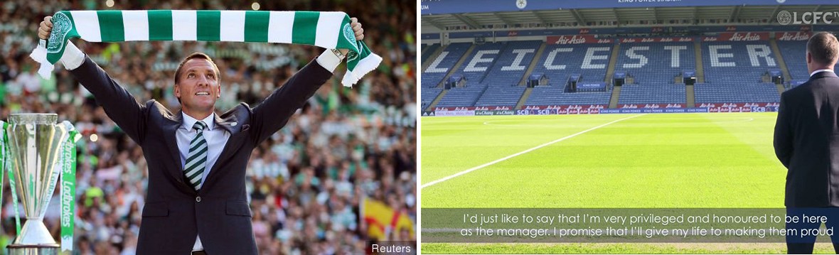For him to be wearing the Leicester City tie and stiltedly reading out scripted pish from an autocue where he confirmed how much of an honour it was to be managing them and even going as far as to offer up his life in his pursuit of their success was as absurd as it was stomach-churningly hollow. Yeah, Brendan, you’ll give it ‘everything’………….until something else comes along.